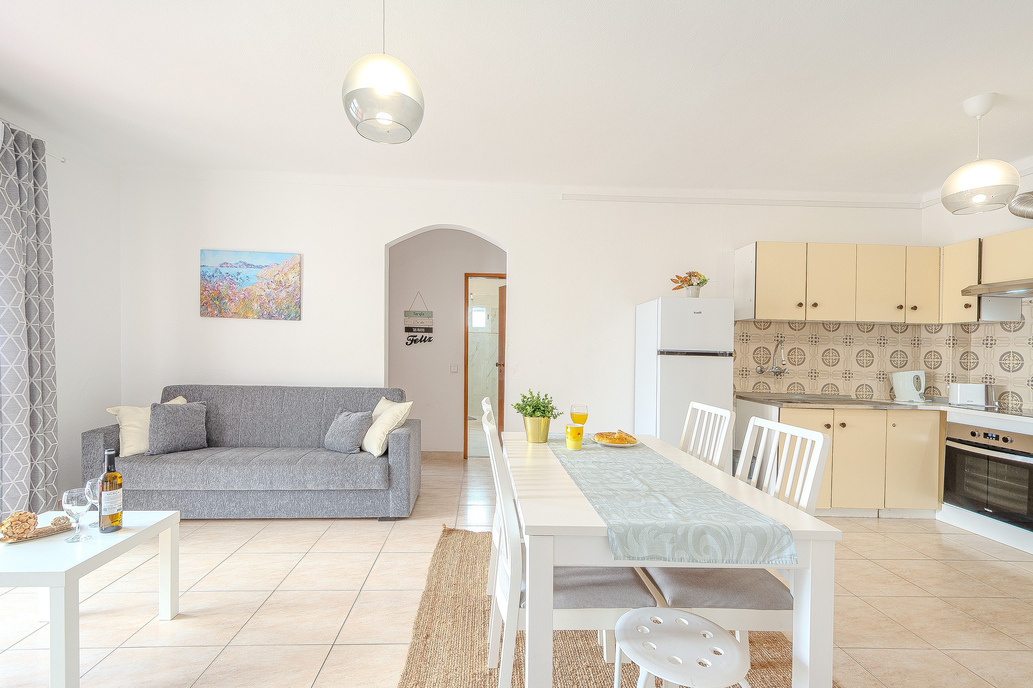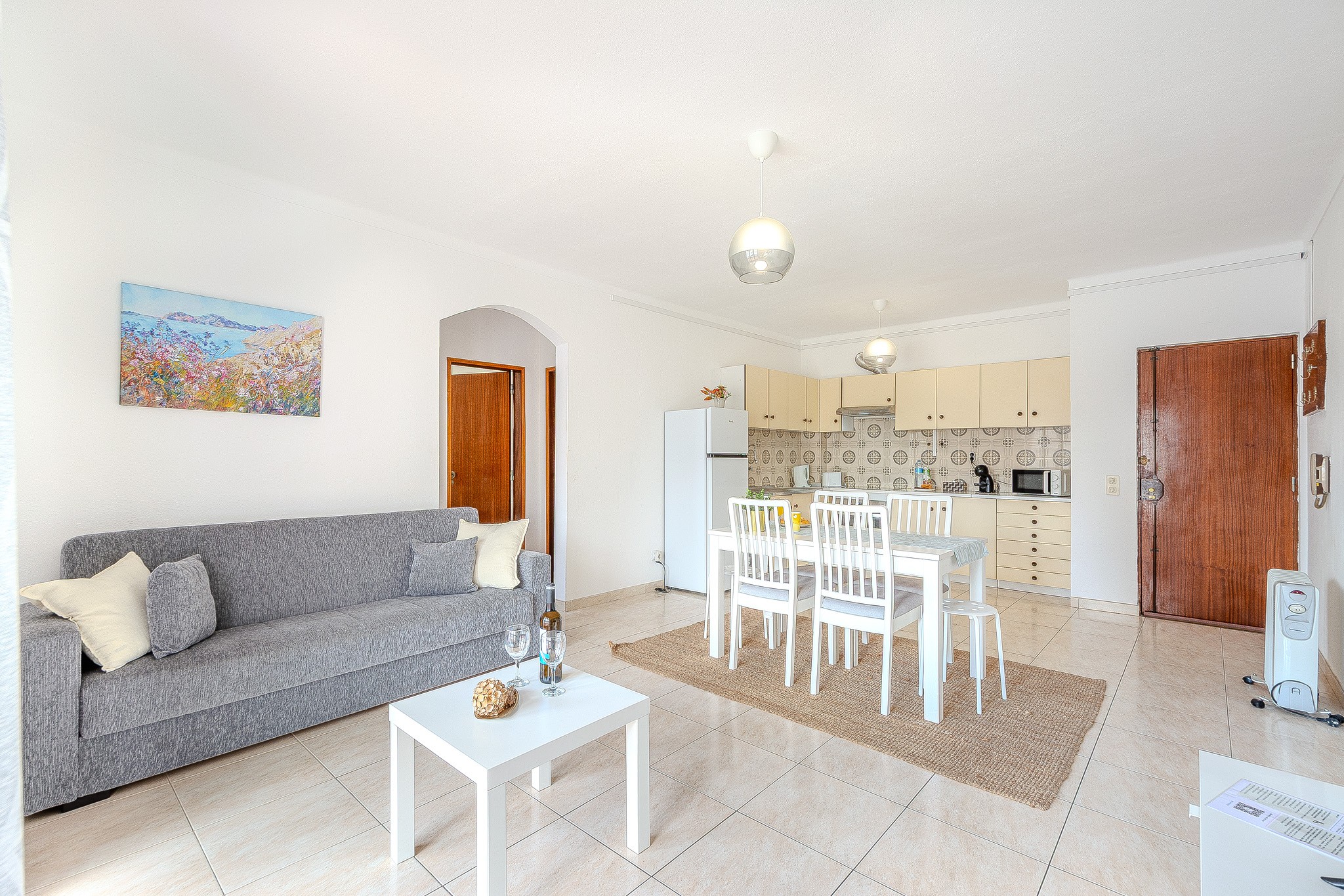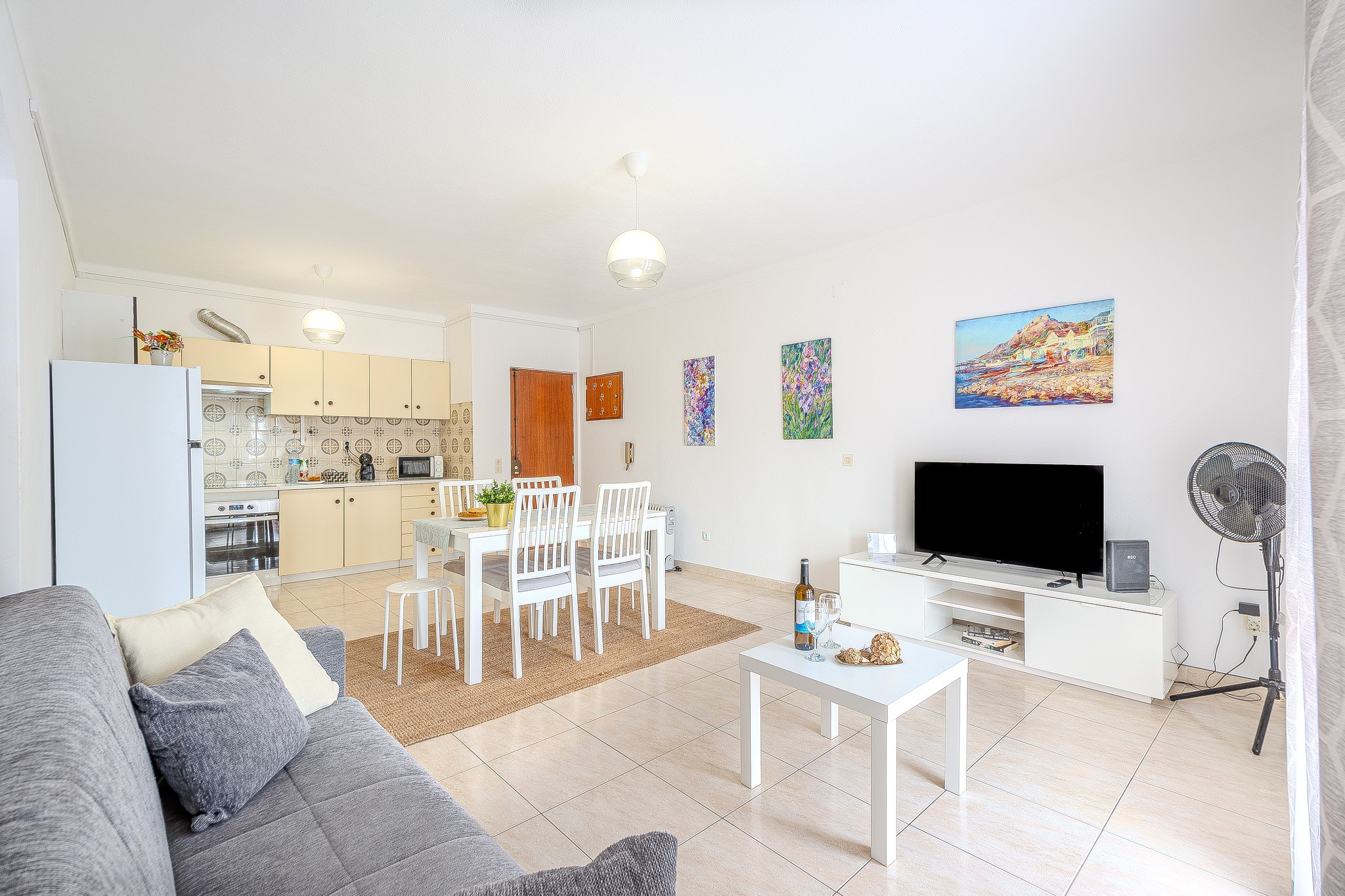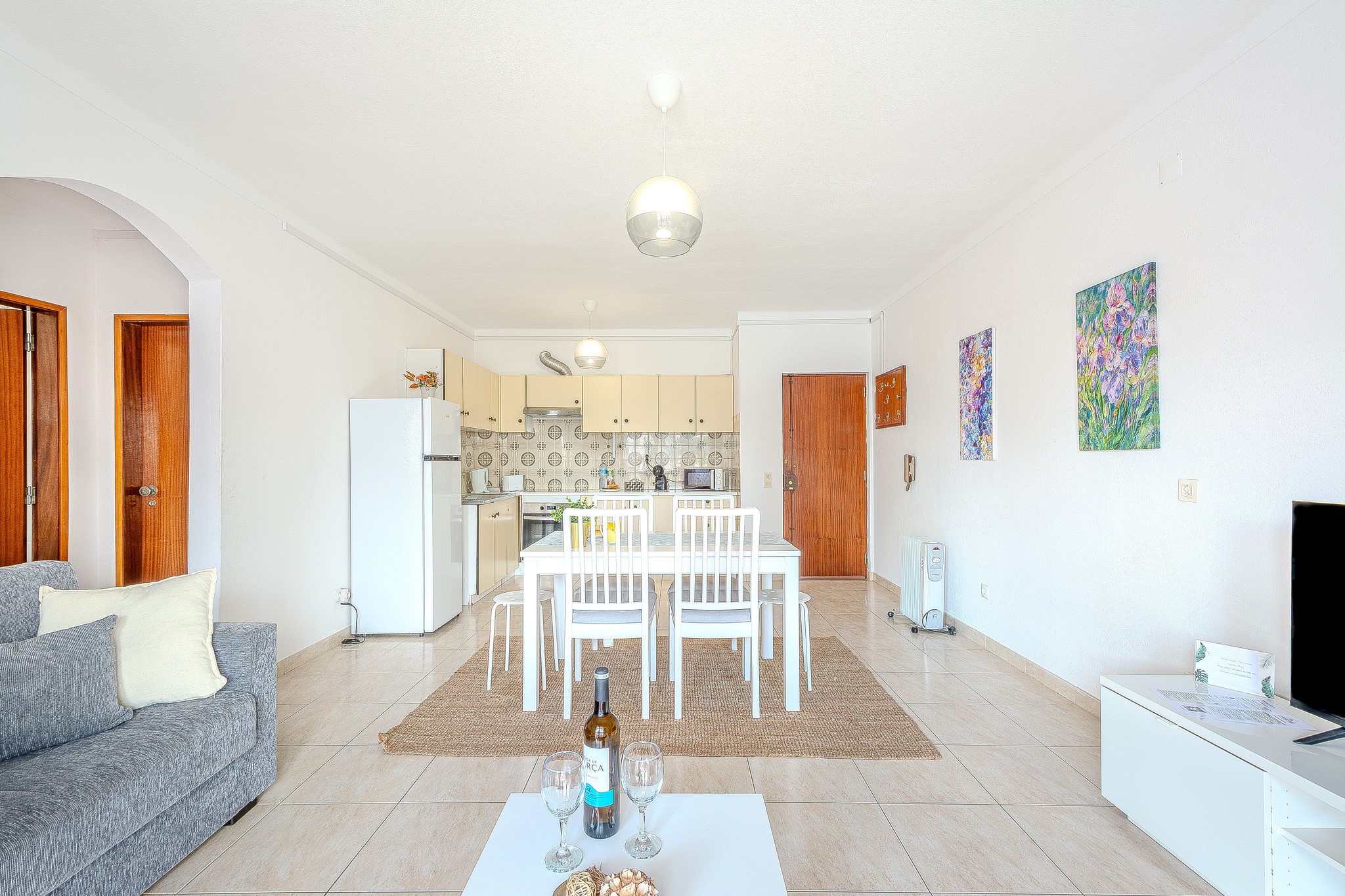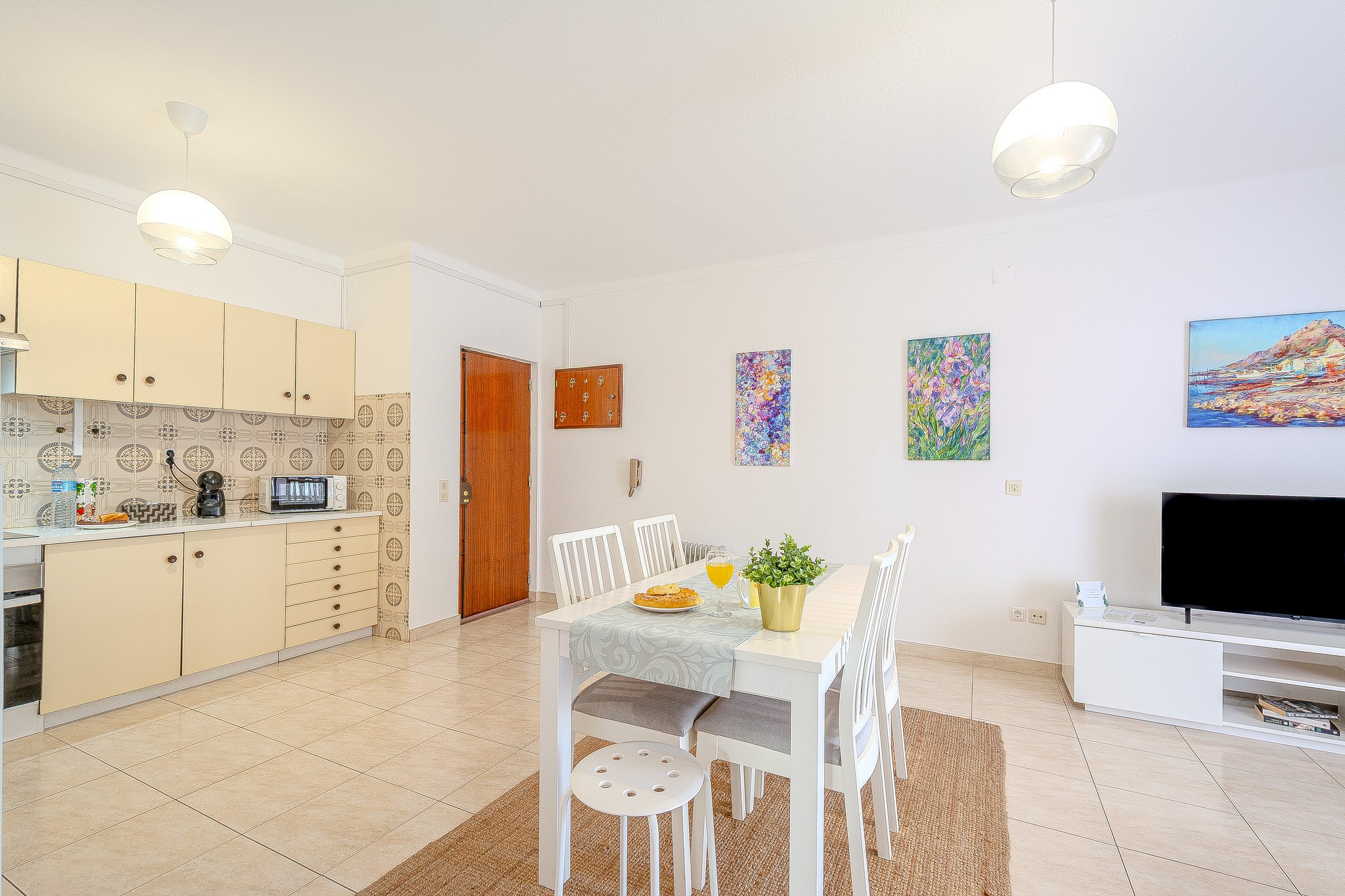 Este agradável apartamento inclui uma sala de estar/jantar com uma televisão com canais por cabo e Wi-fi, mesa de refeições, um sofá-cama que acomoda mais 1 pessoas. A cozinha está totalmente equipada, estão disponíveis comodidades, tais como, placa de fogão, forno, frigorifico, micro-ondas, máquina lavar roupa, torradeira, chaleira elétrica. A varanda com vista para o exterior, inclui cadeiras para poder desfrutar de uma bebida refrescante.