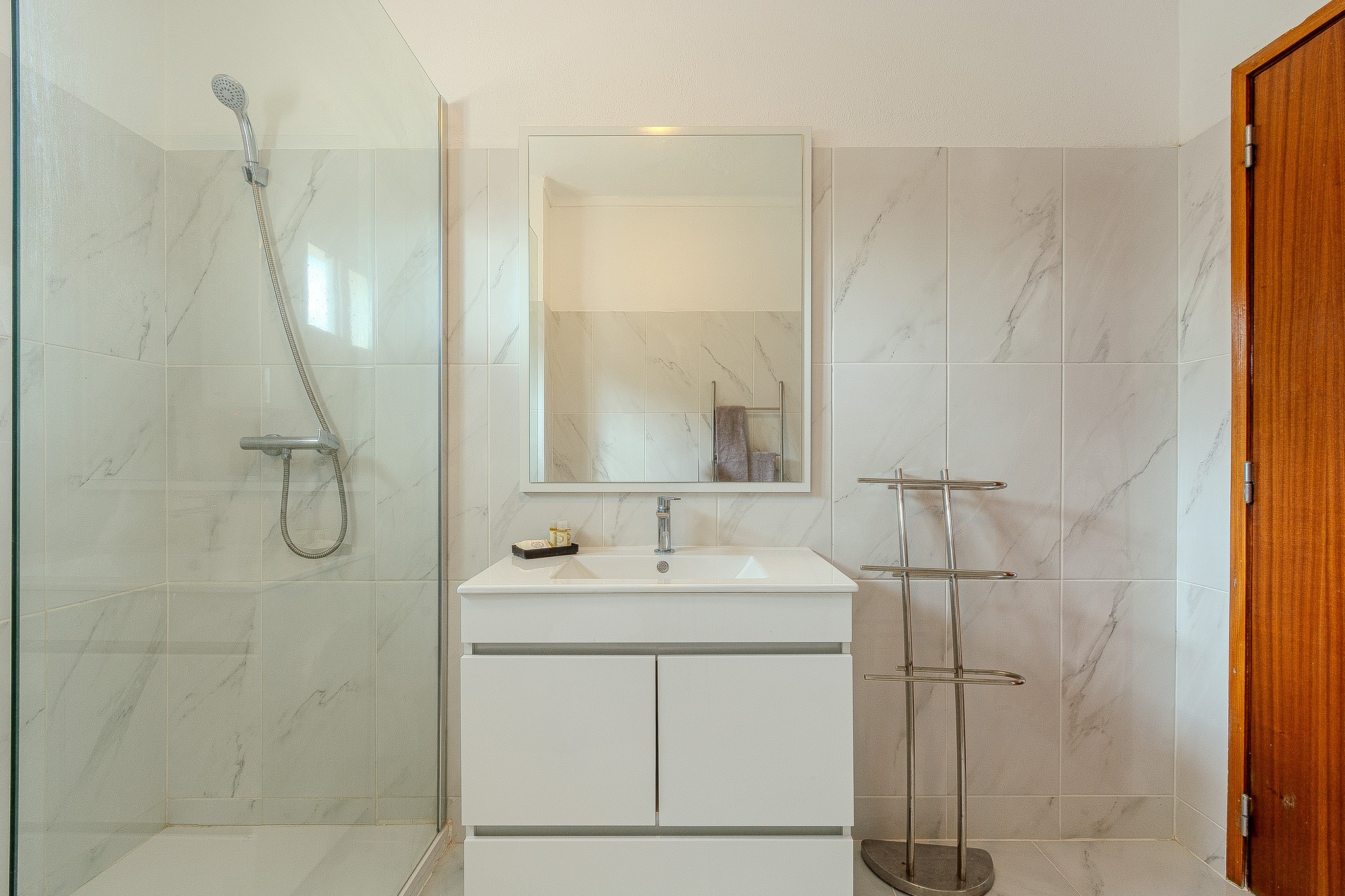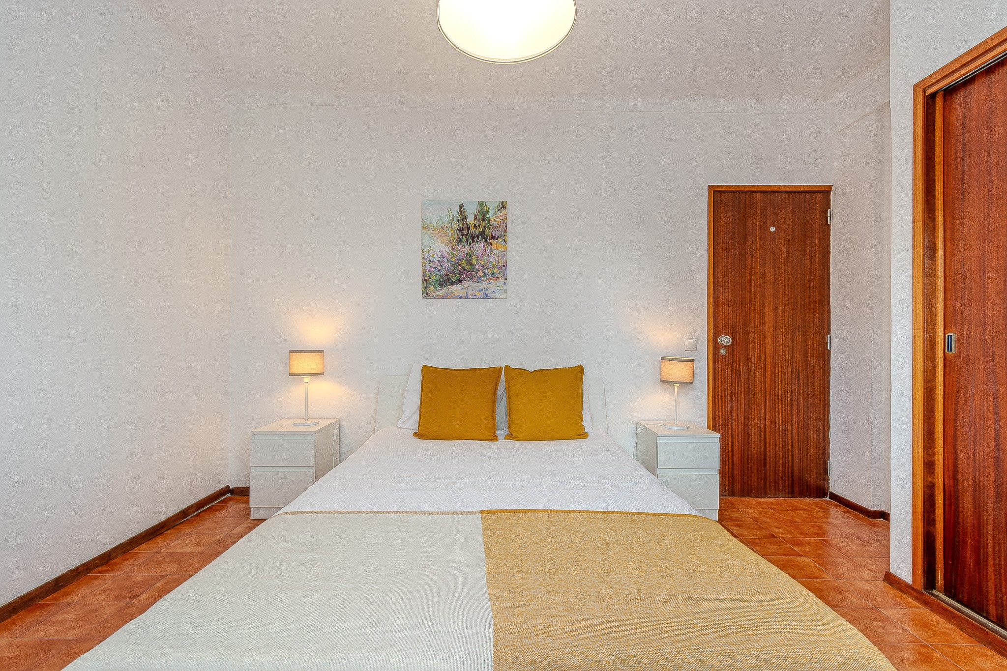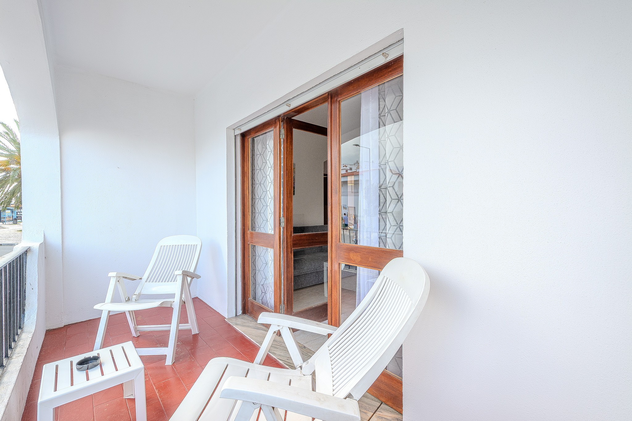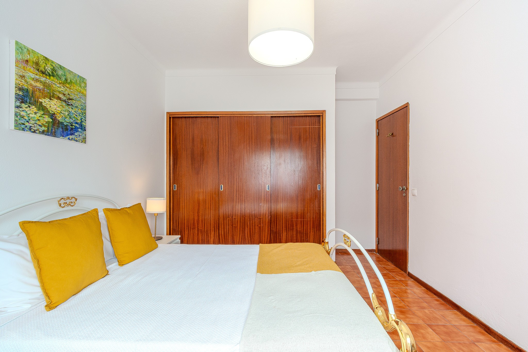 Apartamento no Rés-do-Chão com capacidade para 5 pessoas com Ar Condicionado, é composto por 2 quartos com cama de casal; uma casa de banho completa com lavatório e poliban.