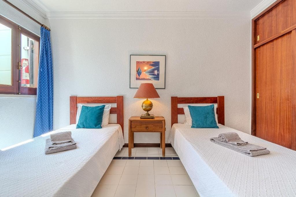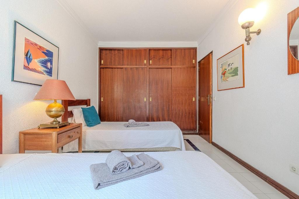Esta unidade especialmente pensados para famílias com capacidade até 4 pessoas, que necessitam de uma zona ampla e equipada com todos os serviços necessários para umas férias perfeitas em Albufeira. Este apartamento com 2 espaçosos quartos; Q1 – ensiute com camas individuais, uma casa de banho com poliban, Q2 – ensiute com cama de casal, casa de banho com banheira.